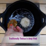 15. Prese lime size balls on mould and make oval shaped thekua.