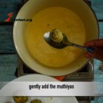 1. When the yogurt mix comes to a boil, gently add the prepared muthias one by one. Please don't stir it as it may break.