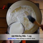 Immediately add a cup of Milk or Soy Milk while stirring continuously to avoid any lump.