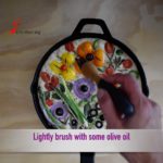 Grease a Cast Iron Skillet with olive oil. You can either use one large pan (I used a skillet of 10 inches) or multiple small skillets (6 or 8 inches). You can also use any other Baking Pan.