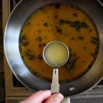 When it boils, turn off flame. Then add lime water.