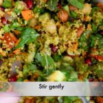 To make this couscous colorful, add plenty of greens in the form of spring onion, coriander leaves and mint leaves. You may add any seasonal vegetable of your choice.