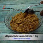Take out. Add a tbsp of oil or peanut butter or milk to add some moisture. If your mixture is already moist and easy to handle, you can skip this step.