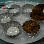 Spread about 2 tbsp of the crumb mixture into each mould. Press firmly with your hands or you can press using another mould.