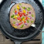 Add any vegetable of your choice as topping. I have used chopped onions, tomatoes, red green and yellow peppers, green chillies and finely chopped ginger.