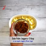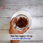 - 2 tbsp Date Palm jaggery . (You can use regular jaggery or brown sugar too. But Date palm jaggery has a very distinct taste and is available in India during winter months. So if possible, try using it.)
