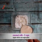• 2 cups coconut milk. (You can use regular dairy milk for non vegan options.)