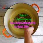 If baking on stove top, then preheat a heavy bottomed pan or Dutch oven on gas for 15 minutes.